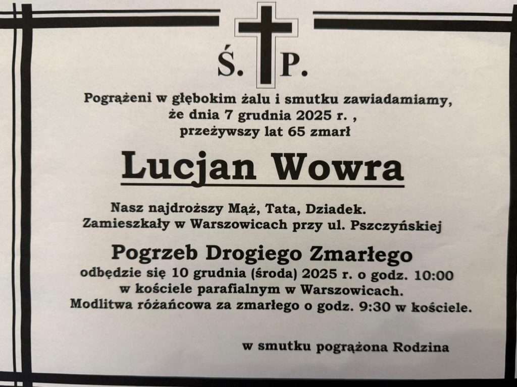 Z głębokim żalem zawiadamiamy o śmierci śp. Lucjana Wowry
